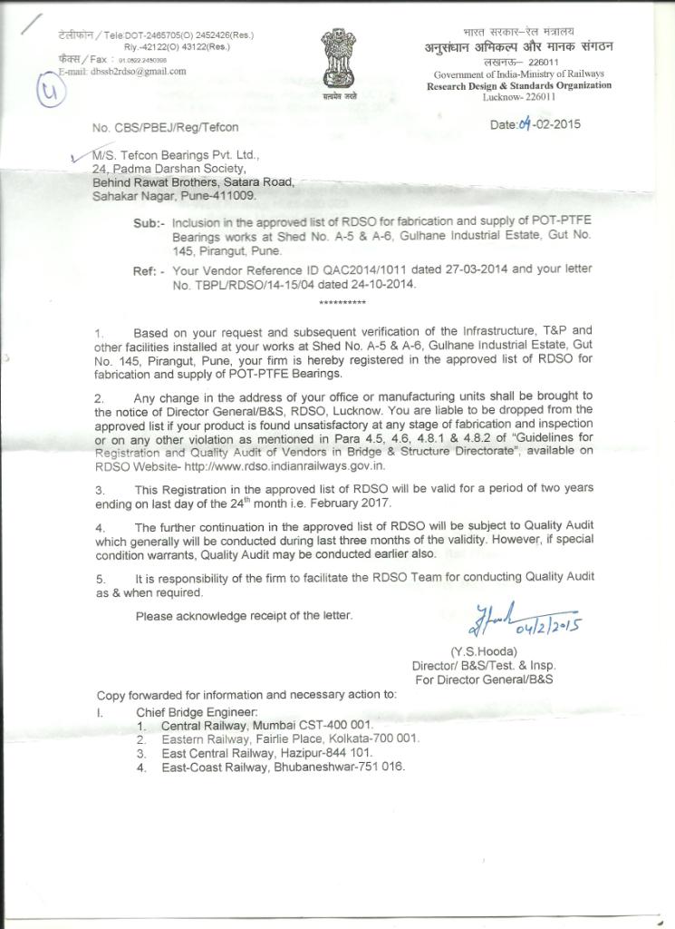 The Tefcon Bearing Pvt. Ltd Company was started in 1984 for manufacturing of POT-PTFE bearings. The Company manufactures various type of POT Bearings for Flyovers, Bridges, Aqueducts and PTFE / SS Slide Bearings for the Electro static Precipitators and other uses. The company has supplied up to 12500 KN vertical load carrying capacity bearings. Till date, company has supplied POT-PTFE bearings for more than 150 bridges, flyovers and aqueducts. Most of the large construction companies are our clients for bridges and flyovers.